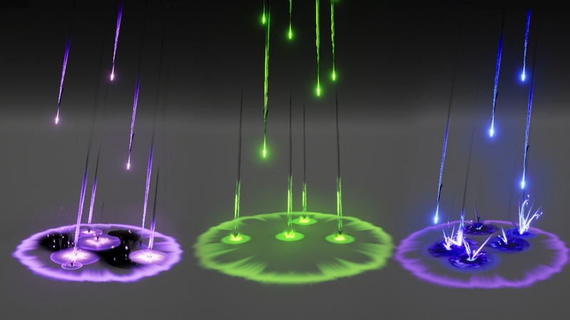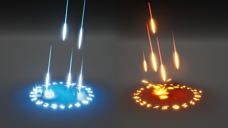 58 AoE Magic Abilities that includes Comets, Meteor Rain, Arrow Rain, AoE Impacts, Buffs, Debuffs, Vertical Attacks, Stuns in themes such as Fire, Ice, Water, Toxic, Electricity, Void, Arcane, Speed, and Heal. Perfect for RPGs or games with lots of abilities.