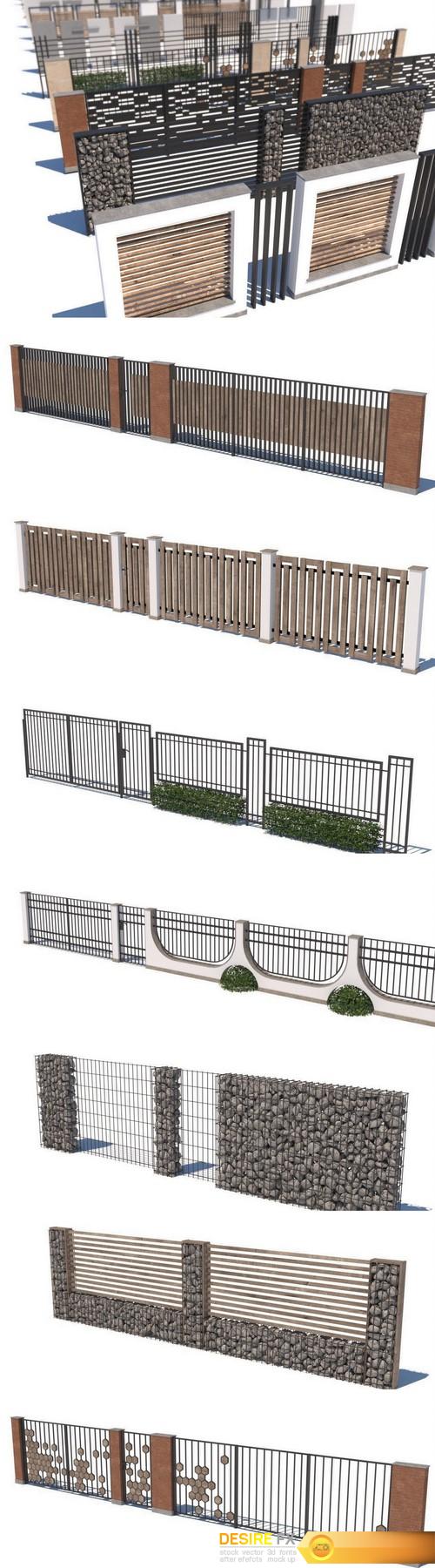 Modern fence collection VR AR low-poly 3D model