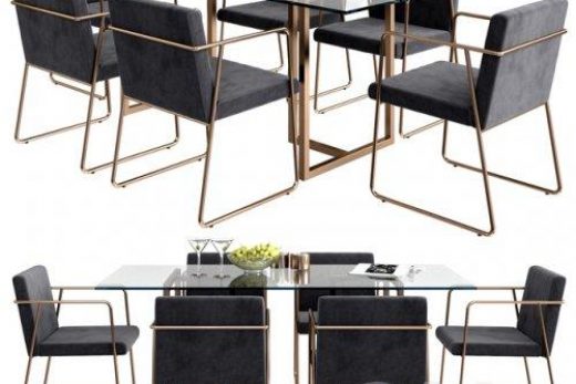 CB2 rouka chair & rectangular dining table 3D model