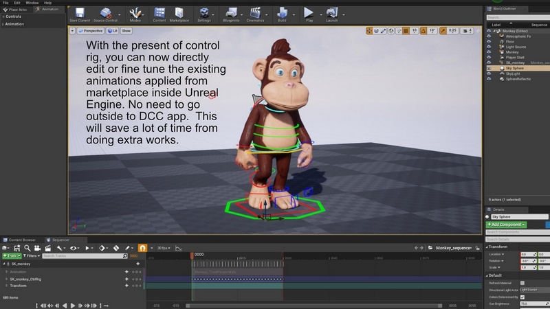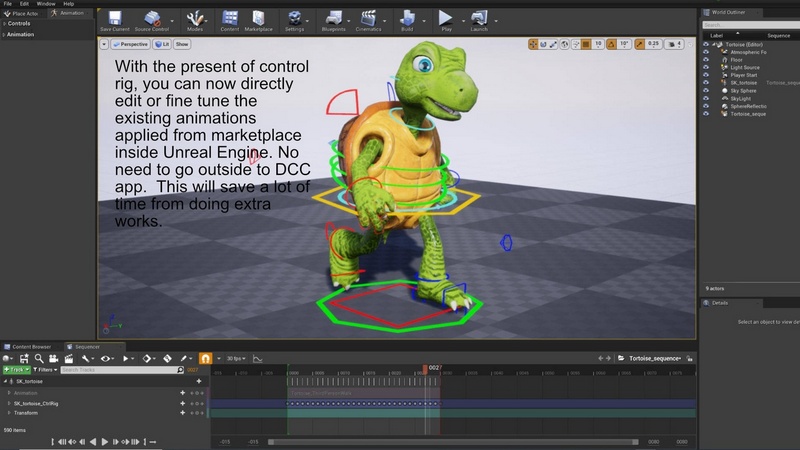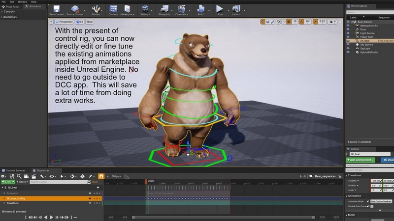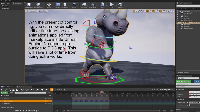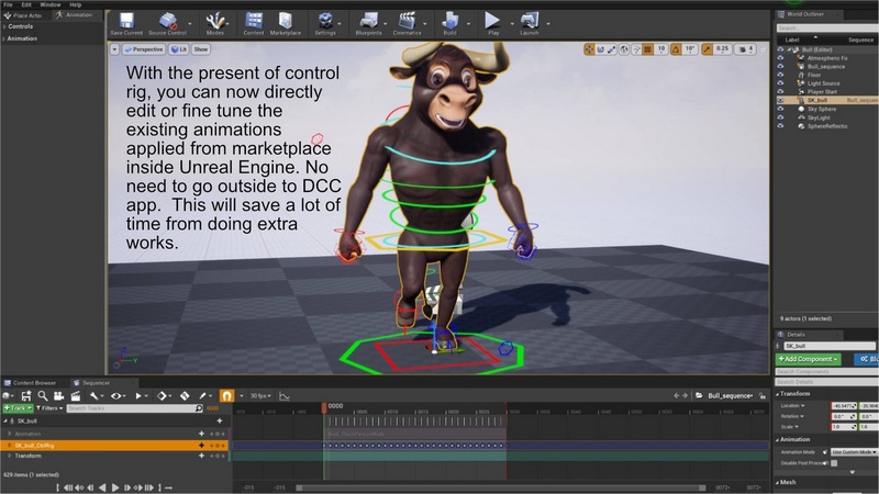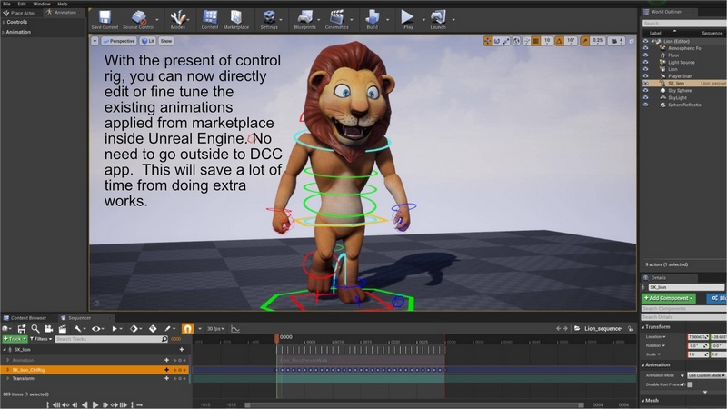 1) Control rigs are added to each animal character. You can now create animation or fine tune the re-targeted animation inside Unreal Engine. Make sure to enable the Control Rig plugins before you see the assets.