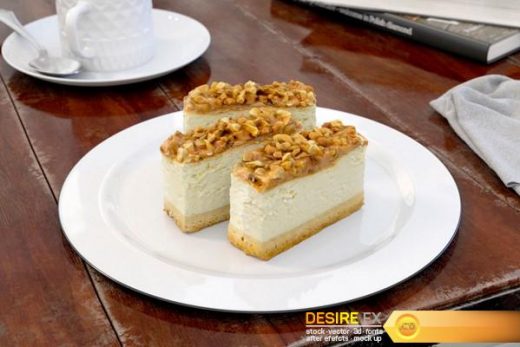 Tender curd cake with nuts 3D Model