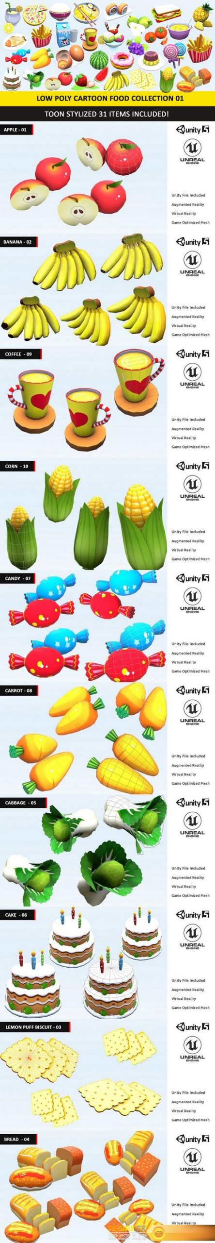 3D Models Food & Drinks Cgtrader – Toy Toon Cute Food Collections Low Poly Pack – 01 AR VR Low-poly 3D model 2019-10-03 0