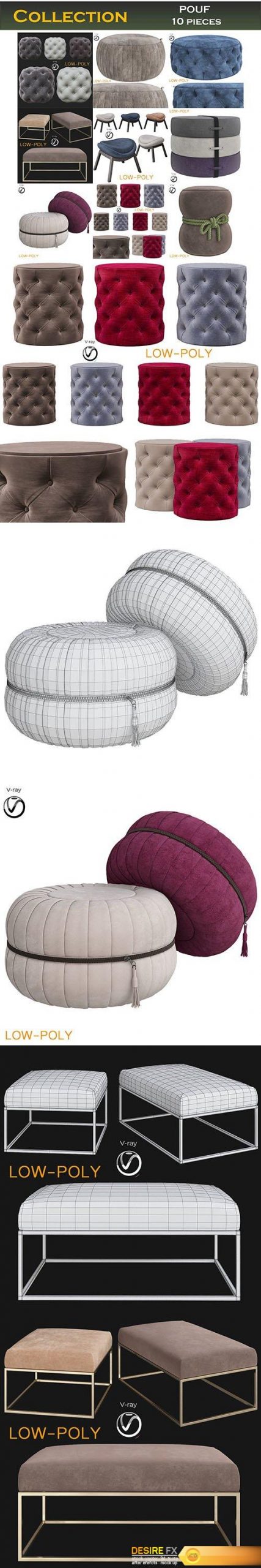 Cgtrader – POUF 10 pieces 3d model Low-poly 3D model
