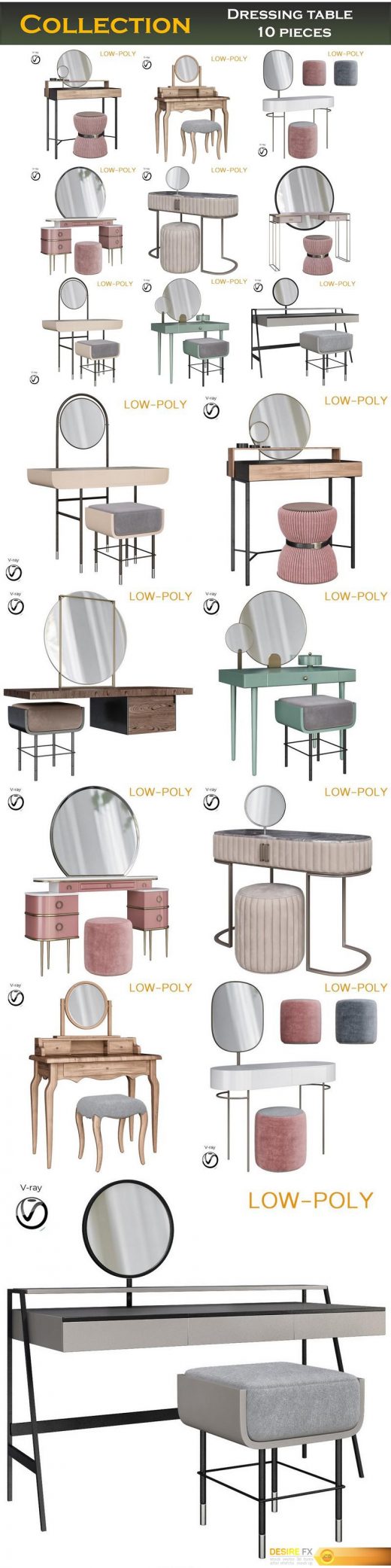 3D Models Interiors & Exteriors Cgtrader – Dressing table collection 3d model Low-poly 3D model 2019-10-31 0