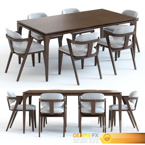 West Elm Jules Table and Slope Chairs 3D model