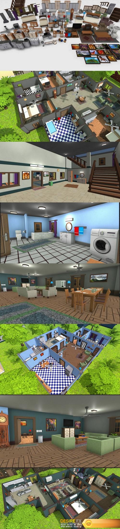 3D Models Interiors & Exteriors Cgtrader – Easily Interiors Full Packs Low-poly 3D model 2019-07-26 0