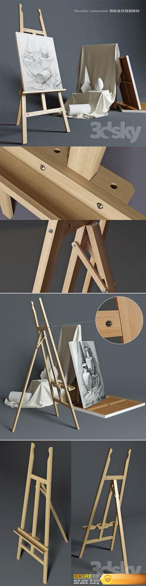 Easel outdoor BRAUBERG with a still life of plaster figures 3d model