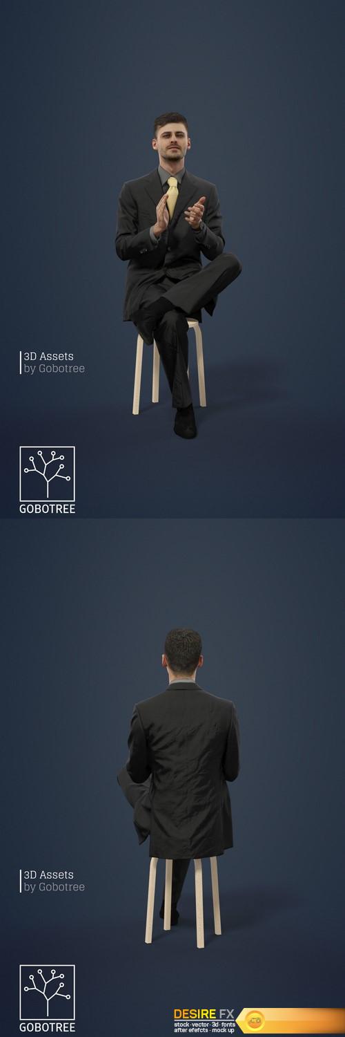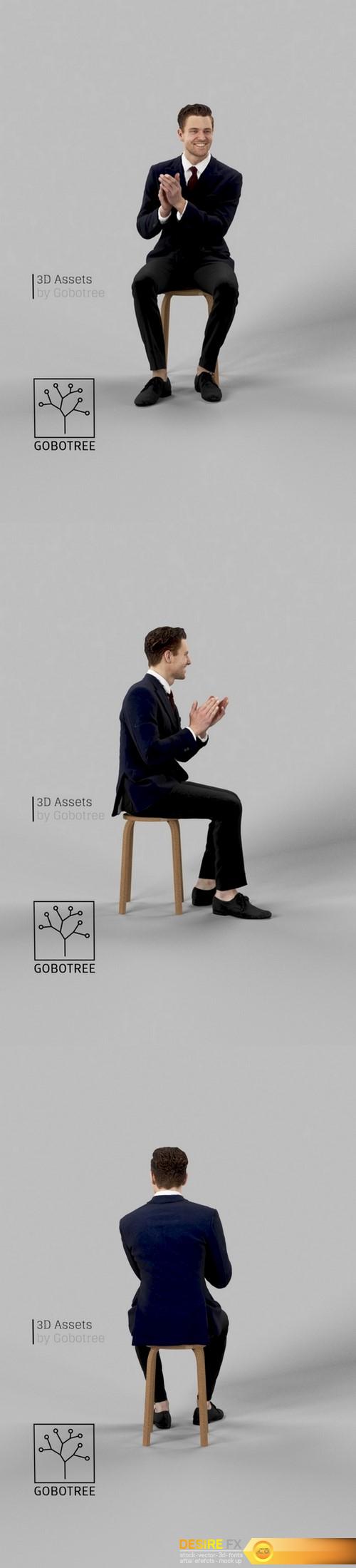 3D Business Sitting Man Vince In A Black Suit Clapping