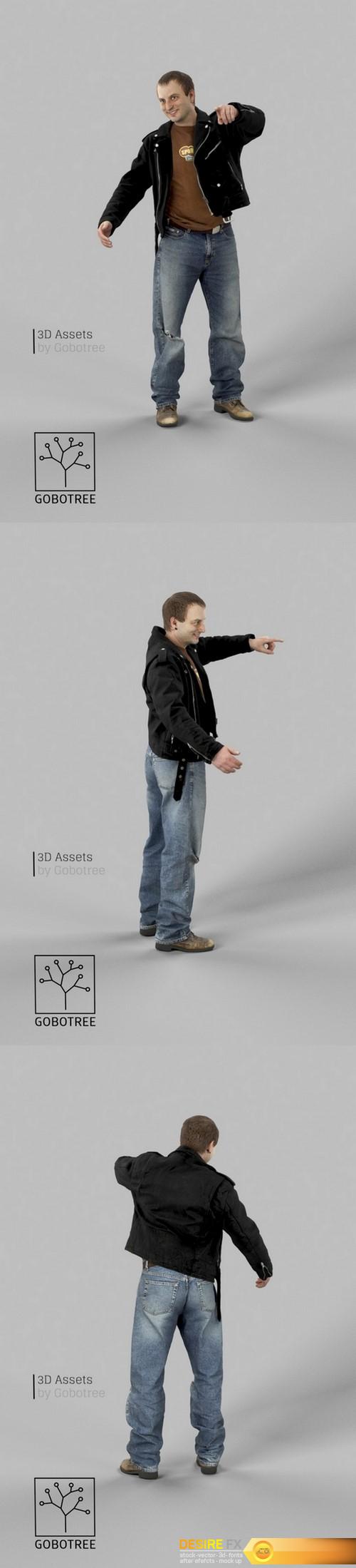 Casual Man In Black Leather Jacket Pointing Punk Rock Vojtak 3D