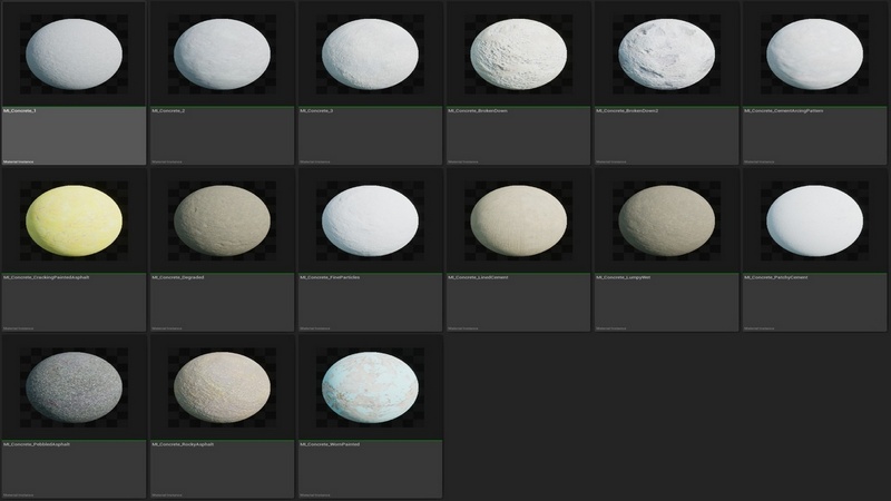 15 Different Concrete Materials using Nanite Tessellation.