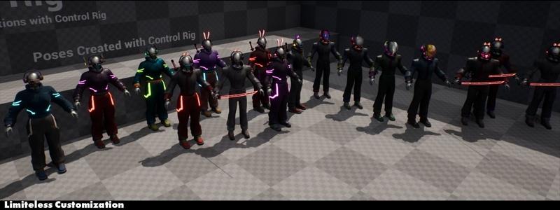 With our masked material instance, you can pick 3 colors, different roughness levels and metalness adjustments giving new looks to all assets.
