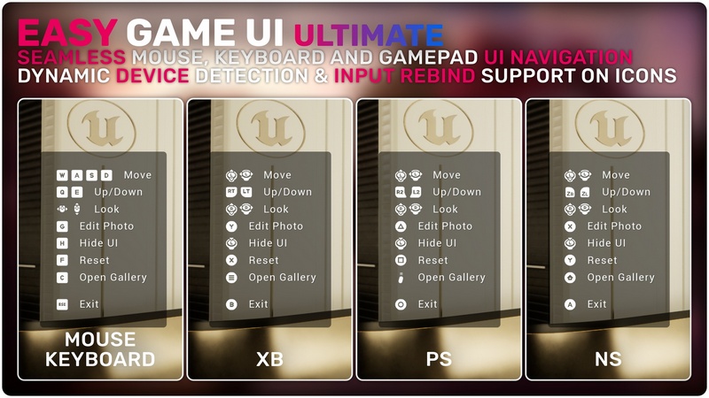 Easy Game UI Ultimate is a quick and simple way to add a complete UI Framework to your game with everything you need and more! This includes a main menu, pause menu, an options menu, an advanced save game system, a photo mode and more unique features such as a game benchmarking tool and a procedural game credits system! Alongside those systems, you also get an advanced HUD Building Tool and a feature-packed interaction system!