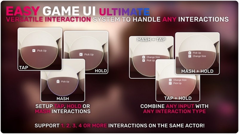 Support for Tap, Hold or Mash interactions that can easily be combined