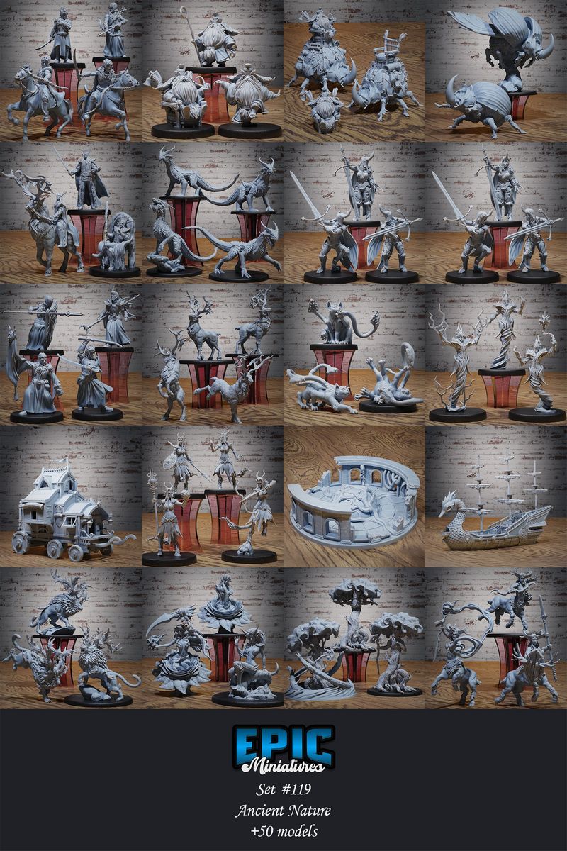 Epic Miniatures – Ancient Nature Set – Elf and Forest Encounter – Magical Woods Collection – 3D Print Model