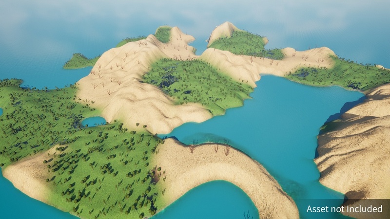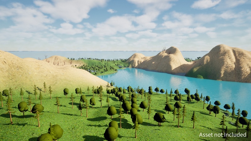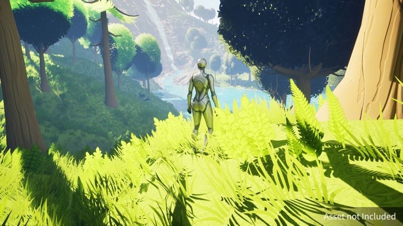 High-Quality Landscape Material: Includes a sample stylized landscape material with Nanite Tesselation and RVT support.