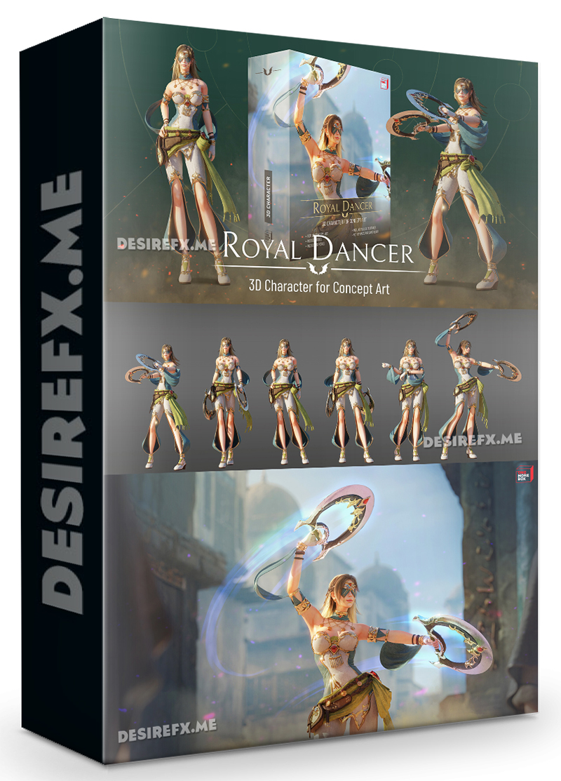 The Royal Dancer 3D model is fully rigged and textured for concept art projects. This package include: