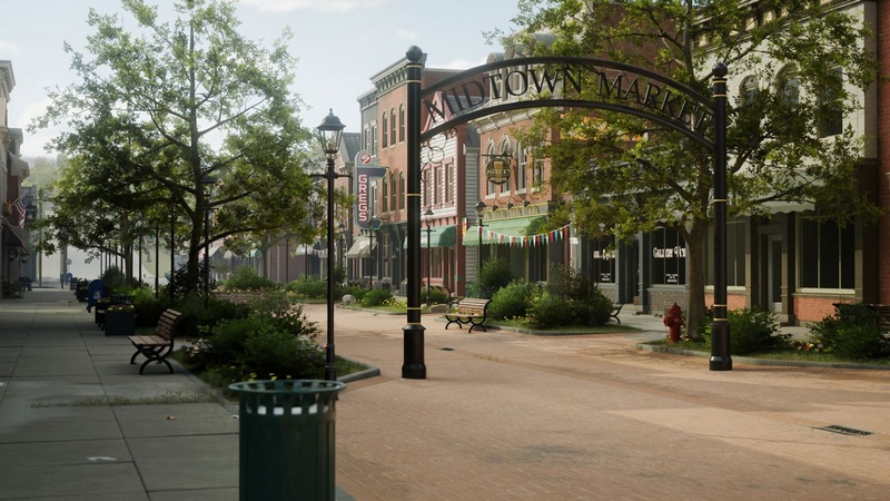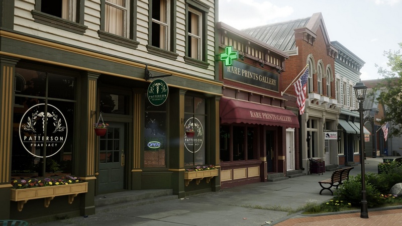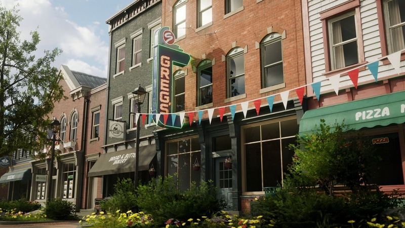 This project includes a modular set to build your own American inspired small town stores/street environment with all of the assets, materials, plus an example map shown in the images. Includes both exterior and interior modular pieces. Each asset was created to a high quality and standard suitable for AAA quality visuals. The pack utilises Lumen and Nanite for the best quality real-time visuals.