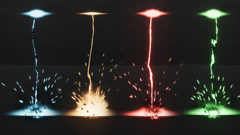 33 Stylized Lightning Strikes with customizable options such as Start Point, End Point, Thickness, Scale, Duration and Color. Done entirely with Niagara and made to be flexible for you.