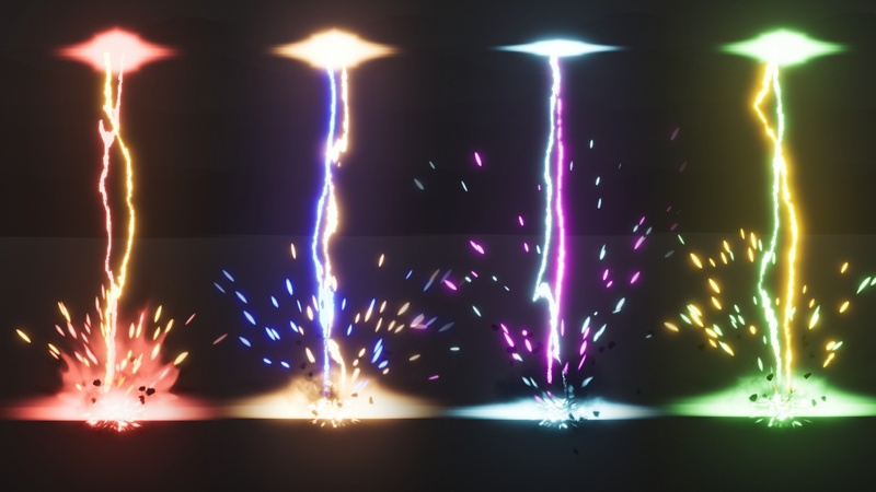 33 Stylized Lightning Strikes with customizable options such as Start Point, End Point, Thickness, Scale, Duration and Color. Done entirely with Niagara and made to be flexible for you.