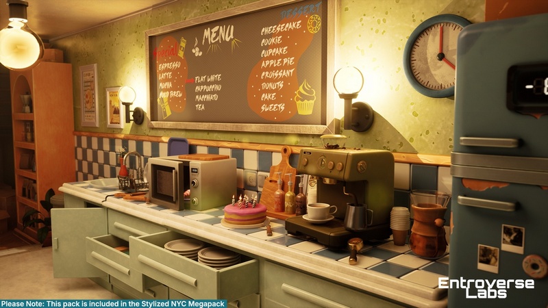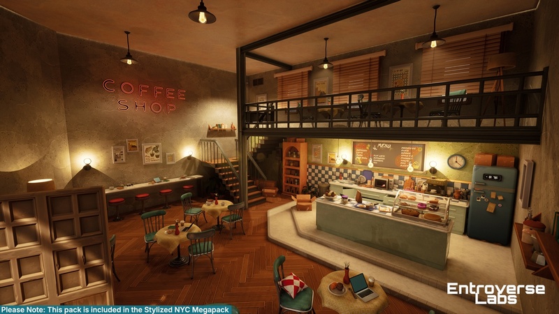 Stylized New York Cafe – Coffee Shop Interior Modular Environment – Unreal Engine