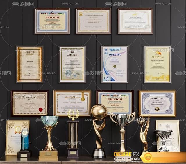 Trophy, medal, certificate set 06