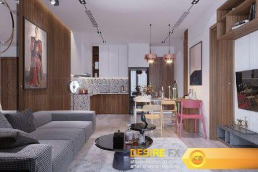 Kitchen – Livingroom Interior Scene By TranHai