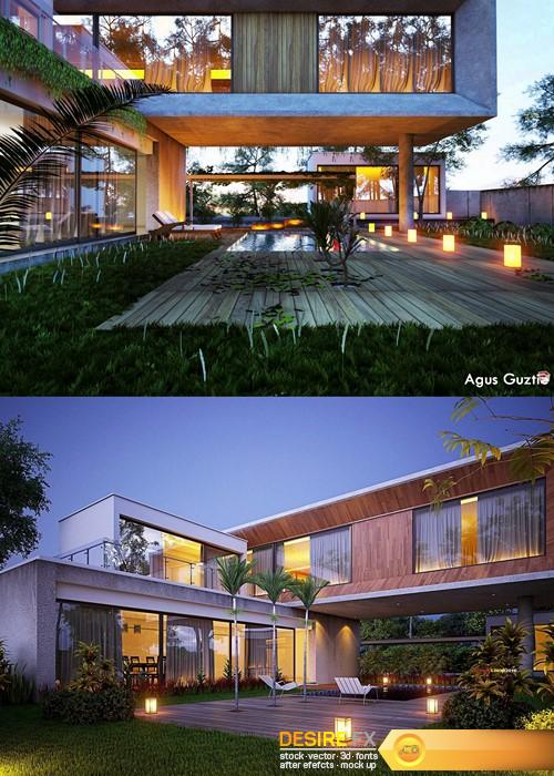 Concrete House Exterior Scene