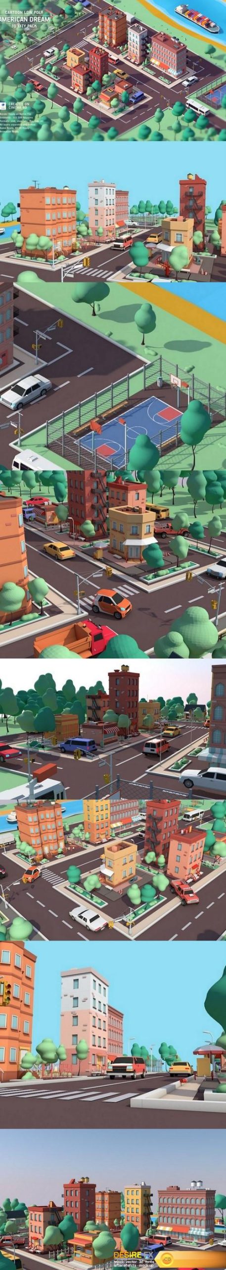 Cgtrader – Cartoon Low Poly American Dream City Pack Low-poly 3D model